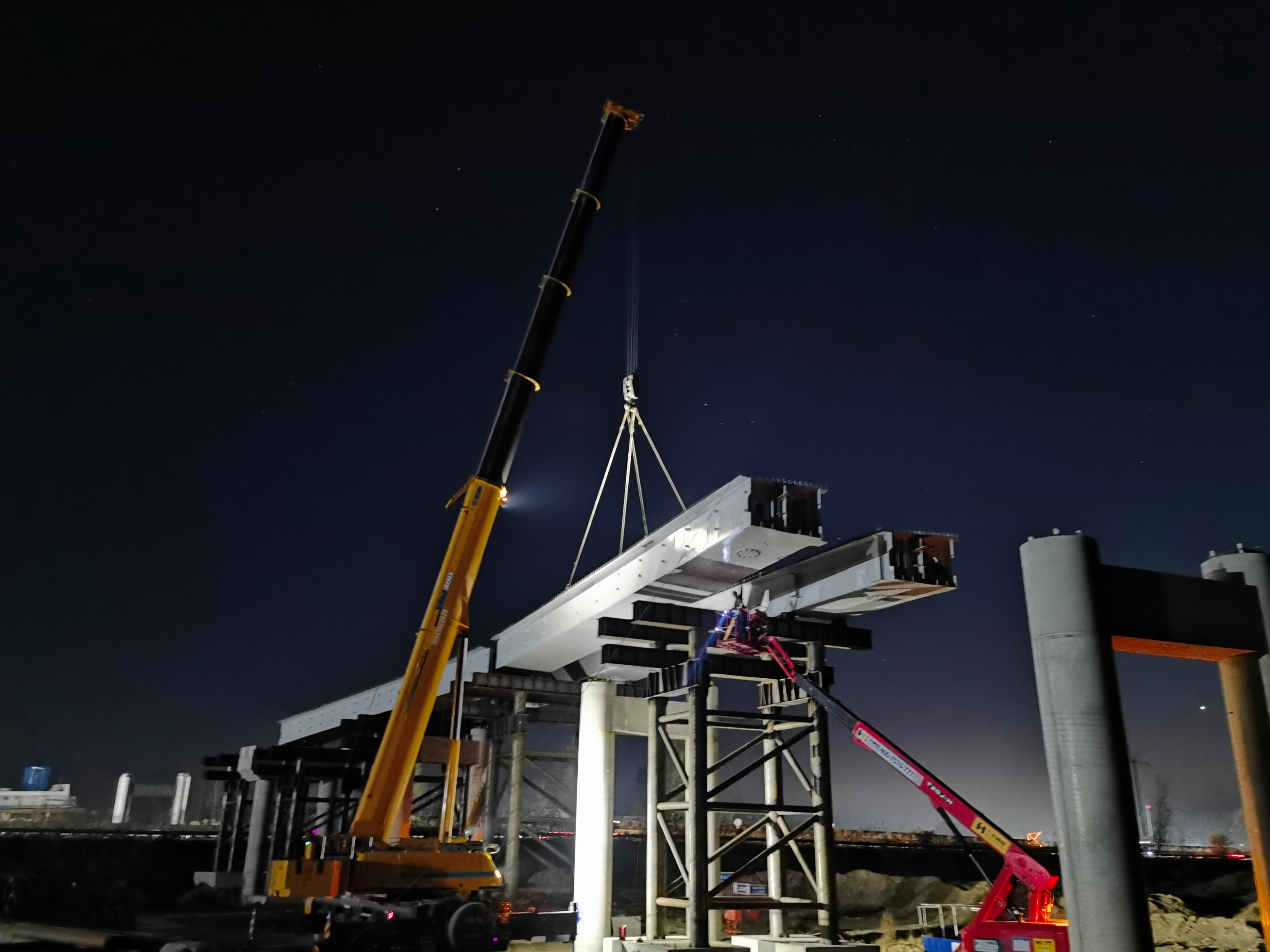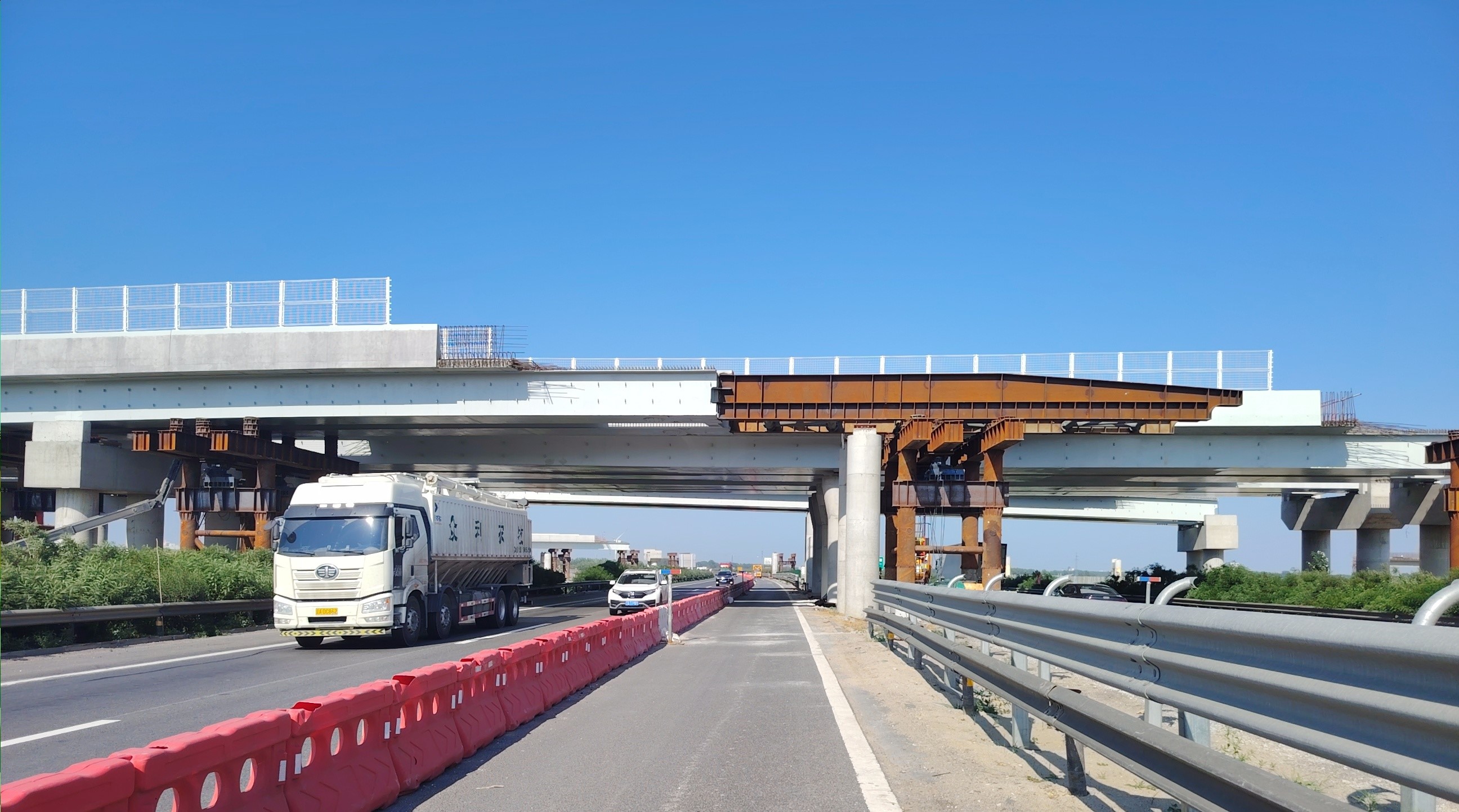 本互通共有6座橋梁上跨京沈高速公路主線,分別為K57+931.5主線跨線橋(左右幅)、CK0+695.6匝道橋、DK1+608.3匝道橋、GK0+707.844匝道橋、HK1+408.8匝道橋,上跨橋梁上部結(jié)構(gòu)為鋼混合梁,全部采用頂推工藝施工。